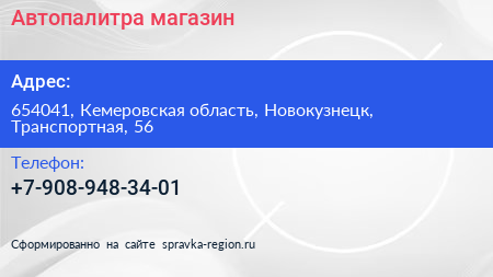 Автопалитра, магазин по адресу 654041, Кемеровская область, Новокузнецк, Транспортная, 56 в дальнейшем Организация, размещена в следующих категориях: