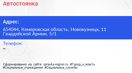 Автостоянка по адресу 654044, Кемеровская область, Новокузнецк, 11 Гвардейской Армии, 5/1 в дальнейшем Организация, размещена в следующих категориях: