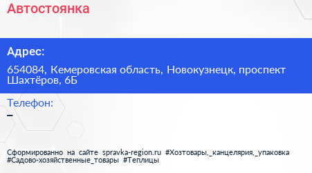 Автостоянка по адресу 654084, Кемеровская область, Новокузнецк, проспект Шахтёров, 6Б в дальнейшем Организация, размещена в следующих категориях: