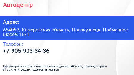 Автоцентр по адресу 654059, Кемеровская область, Новокузнецк, Пойменное шоссе, 18/1 в дальнейшем Организация, размещена в следующих категориях: