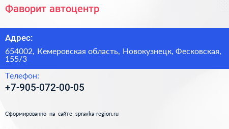 Фаворит, автоцентр по адресу 654002, Кемеровская область, Новокузнецк, Фесковская, 155/3 в дальнейшем Организация, размещена в следующих категориях:
