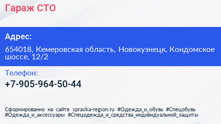 Гараж, СТО по адресу 654018, Кемеровская область, Новокузнецк, Кондомское шоссе, 12/2 в дальнейшем Организация, размещена в следующих категориях: