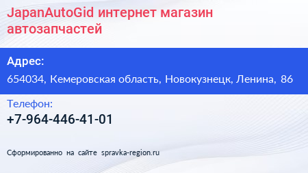 JapanAutoGid, интернет-магазин автозапчастей по адресу 654034, Кемеровская область, Новокузнецк, Ленина, 86 в дальнейшем Организация, размещена в следующих категориях: