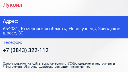 Лукойл по адресу 654031, Кемеровская область, Новокузнецк, Заводское шоссе, 30 в дальнейшем Организация, размещена в следующих категориях: