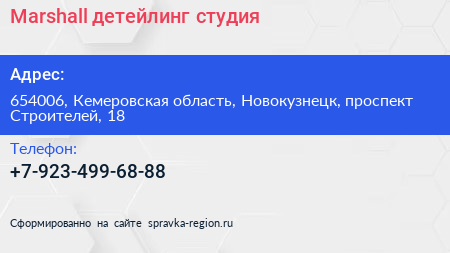 Marshall, детейлинг-студия по адресу 654006, Кемеровская область, Новокузнецк, проспект Строителей, 18 в дальнейшем Организация, размещена в следующих категориях: