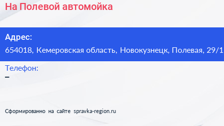 На Полевой, автомойка по адресу 654018, Кемеровская область, Новокузнецк, Полевая, 29/1 в дальнейшем Организация, размещена в следующих категориях: