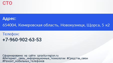 СТО по адресу 654004, Кемеровская область, Новокузнецк, Щорса, 5 к2 в дальнейшем Организация, размещена в следующих категориях: