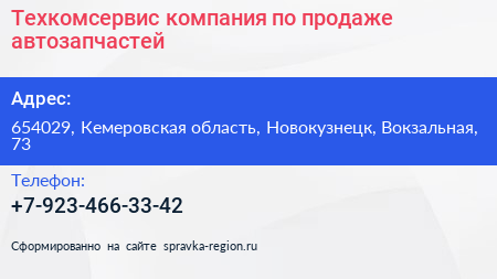 Техкомсервис, компания по продаже автозапчастей по адресу 654029, Кемеровская область, Новокузнецк, Вокзальная, 73 в дальнейшем Организация, размещена в следующих категориях: