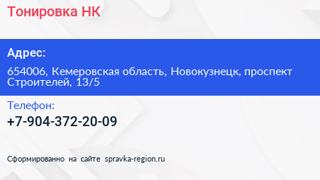 Тонировка-НК по адресу 654006, Кемеровская область, Новокузнецк, проспект Строителей, 13/5 в дальнейшем Организация, размещена в следующих категориях: