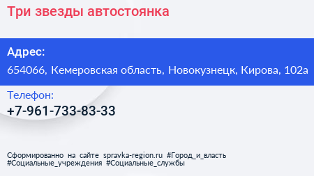 Три звезды, автостоянка по адресу 654066, Кемеровская область, Новокузнецк, Кирова, 102а в дальнейшем Организация, размещена в следующих категориях: