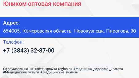 Юником, оптовая компания по адресу 654005, Кемеровская область, Новокузнецк, Пирогова, 30 в дальнейшем Организация, размещена в следующих категориях: