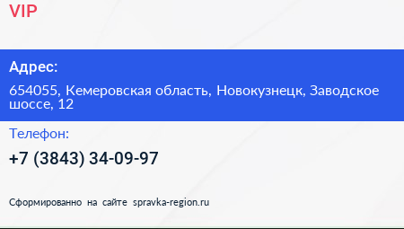 VIP по адресу 654055, Кемеровская область, Новокузнецк, Заводское шоссе, 12 в дальнейшем Организация, размещена в следующих категориях:
