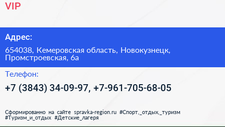 VIP по адресу 654038, Кемеровская область, Новокузнецк, Промстроевская, 6а в дальнейшем Организация, размещена в следующих категориях: