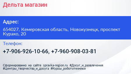 Дельта, магазин по адресу 654027, Кемеровская область, Новокузнецк, проспект Курако, 20 в дальнейшем Организация, размещена в следующих категориях: