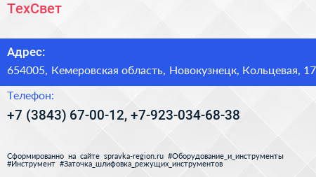 ТехСвет по адресу 654005, Кемеровская область, Новокузнецк, Кольцевая, 17 в дальнейшем Организация, размещена в следующих категориях: