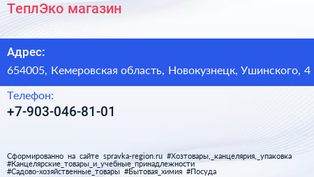 ТеплЭко, магазин по адресу 654005, Кемеровская область, Новокузнецк, Ушинского, 4 в дальнейшем Организация, размещена в следующих категориях: