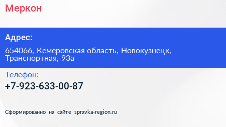 Меркон по адресу 654066, Кемеровская область, Новокузнецк, Транспортная, 93а в дальнейшем Организация, размещена в следующих категориях: