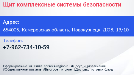 Щит, комплексные системы безопасности по адресу 654005, Кемеровская область, Новокузнецк, ДОЗ, 19/10 в дальнейшем Организация, размещена в следующих категориях: