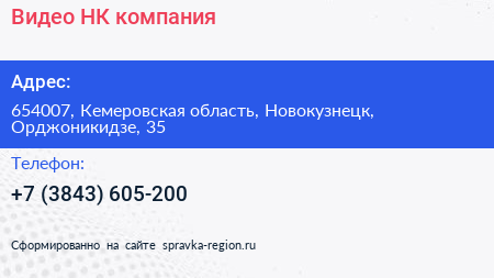 Видео-НК, компания по адресу 654007, Кемеровская область, Новокузнецк, Орджоникидзе, 35 в дальнейшем Организация, размещена в следующих категориях: