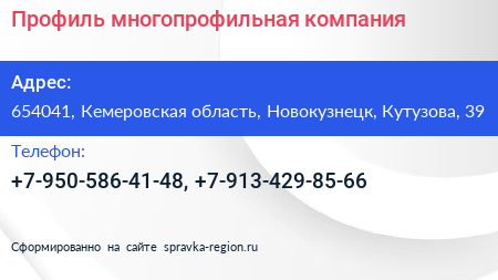 Профиль, многопрофильная компания по адресу 654041, Кемеровская область, Новокузнецк, Кутузова, 39 в дальнейшем Организация, размещена в следующих категориях: