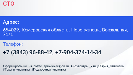 СТО по адресу 654029, Кемеровская область, Новокузнецк, Вокзальная, 71/1 в дальнейшем Организация, размещена в следующих категориях: