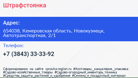 Штрафстоянка по адресу 654038, Кемеровская область, Новокузнецк, Автотранспортная, 2/1 в дальнейшем Организация, размещена в следующих категориях: