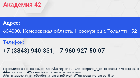 Академия 42 по адресу 654080, Кемеровская область, Новокузнецк, Тольятти, 52 в дальнейшем Организация, размещена в следующих категориях: