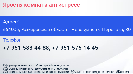 Ярость, комната-антистресс по адресу 654005, Кемеровская область, Новокузнецк, Пирогова, 30 в дальнейшем Организация, размещена в следующих категориях: