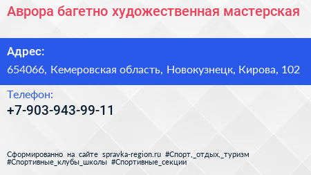 Аврора, багетно-художественная мастерская по адресу 654066, Кемеровская область, Новокузнецк, Кирова, 102 в дальнейшем Организация, размещена в следующих категориях: