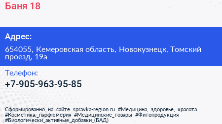 Баня №18 по адресу 654055, Кемеровская область, Новокузнецк, Томский проезд, 19а в дальнейшем Организация, размещена в следующих категориях: