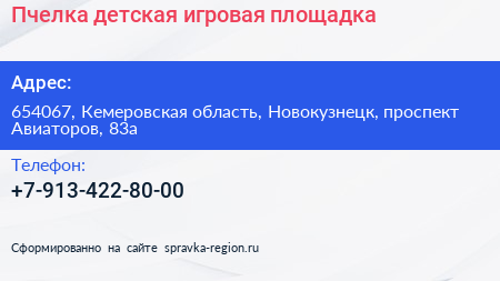 Пчелка, детская игровая площадка по адресу 654067, Кемеровская область, Новокузнецк, проспект Авиаторов, 83а в дальнейшем Организация, размещена в следующих категориях:
