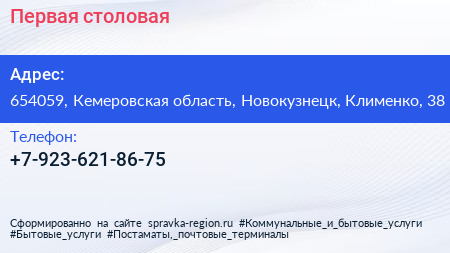 Первая столовая по адресу 654059, Кемеровская область, Новокузнецк, Клименко, 38 в дальнейшем Организация, размещена в следующих категориях: