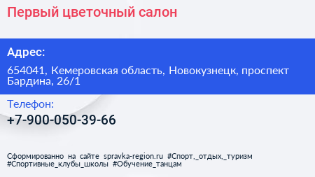 Первый цветочный, салон по адресу 654041, Кемеровская область, Новокузнецк, проспект Бардина, 26/1 в дальнейшем Организация, размещена в следующих категориях: