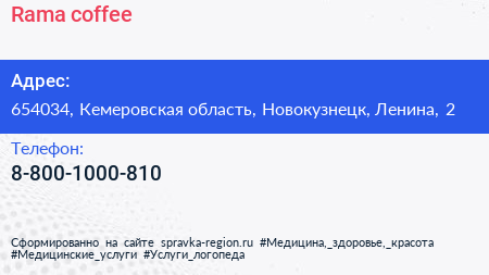 Rama coffee по адресу 654034, Кемеровская область, Новокузнецк, Ленина, 2 в дальнейшем Организация, размещена в следующих категориях: