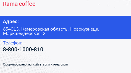 Rama coffee по адресу 654013, Кемеровская область, Новокузнецк, Маркшейдерская, 2 в дальнейшем Организация, размещена в следующих категориях: