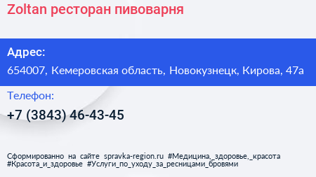 Zoltan, ресторан-пивоварня по адресу 654007, Кемеровская область, Новокузнецк, Кирова, 47а в дальнейшем Организация, размещена в следующих категориях: