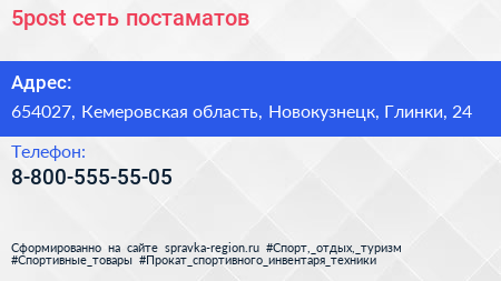 5post, сеть постаматов по адресу 654027, Кемеровская область, Новокузнецк, Глинки, 24 в дальнейшем Организация, размещена в следующих категориях: