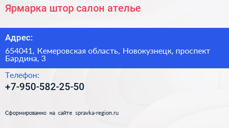 Ярмарка штор, салон-ателье по адресу 654041, Кемеровская область, Новокузнецк, проспект Бардина, 3 в дальнейшем Организация, размещена в следующих категориях: