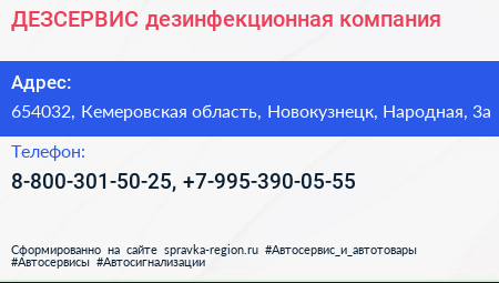 ДЕЗСЕРВИС, дезинфекционная компания по адресу 654032, Кемеровская область, Новокузнецк, Народная, 3а в дальнейшем Организация, размещена в следующих категориях: