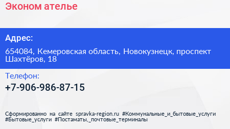 Эконом, ателье по адресу 654084, Кемеровская область, Новокузнецк, проспект Шахтёров, 18 в дальнейшем Организация, размещена в следующих категориях: