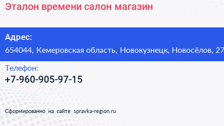 Эталон времени, салон-магазин по адресу 654044, Кемеровская область, Новокузнецк, Новосёлов, 27 в дальнейшем Организация, размещена в следующих категориях: