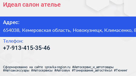 Идеал, салон-ателье по адресу 654038, Кемеровская область, Новокузнецк, Климасенко, 8 в дальнейшем Организация, размещена в следующих категориях: