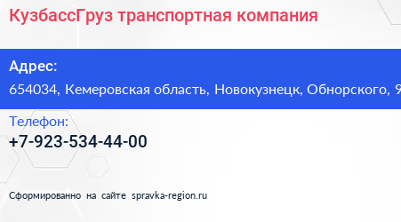 КузбассГруз, транспортная компания по адресу 654034, Кемеровская область, Новокузнецк, Обнорского, 9 в дальнейшем Организация, размещена в следующих категориях: