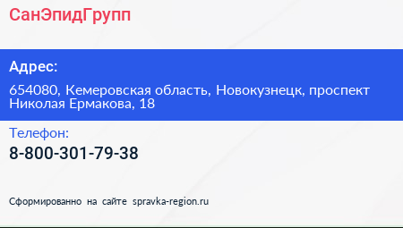 СанЭпидГрупп по адресу 654080, Кемеровская область, Новокузнецк, проспект Николая Ермакова, 18 в дальнейшем Организация, размещена в следующих категориях: