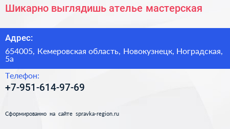 Шикарно выглядишь!, ателье-мастерская по адресу 654005, Кемеровская область, Новокузнецк, Ноградская, 5а в дальнейшем Организация, размещена в следующих категориях: