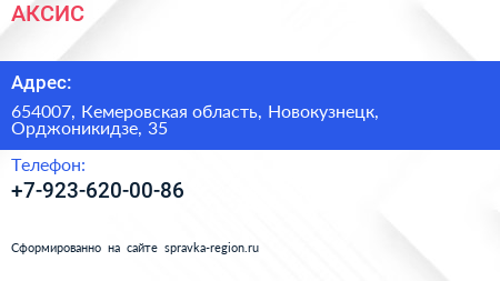 АКСИС по адресу 654007, Кемеровская область, Новокузнецк, Орджоникидзе, 35 в дальнейшем Организация, размещена в следующих категориях: