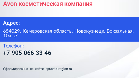 Avon, косметическая компания по адресу 654029, Кемеровская область, Новокузнецк, Вокзальная, 10а к7 в дальнейшем Организация, размещена в следующих категориях: