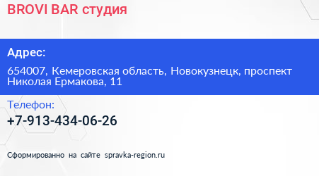 BROVI BAR, студия по адресу 654007, Кемеровская область, Новокузнецк, проспект Николая Ермакова, 11 в дальнейшем Организация, размещена в следующих категориях: