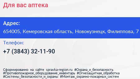 Для вас, аптека по адресу 654005, Кемеровская область, Новокузнецк, Филиппова, 7 в дальнейшем Организация, размещена в следующих категориях: