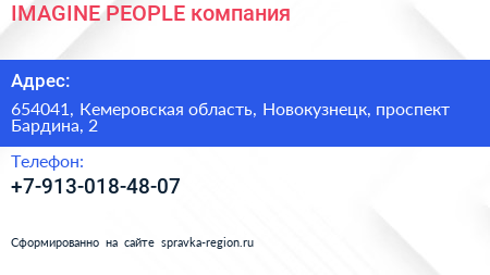IMAGINE PEOPLE, компания по адресу 654041, Кемеровская область, Новокузнецк, проспект Бардина, 2 в дальнейшем Организация, размещена в следующих категориях: